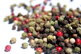 Pimienta blanca: Son los frutos maduros puestos a remojo en agua, que una vez pelados, descubren los granos blancos interiores que son secados a continuación. De sabor más suave que la negra se puede utilizar en encurtidos o en platos de pescado.